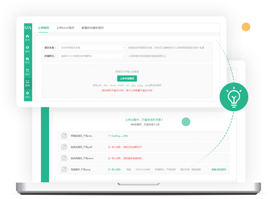 把本地简历批量上传到系统,或导入excel批量添加简历