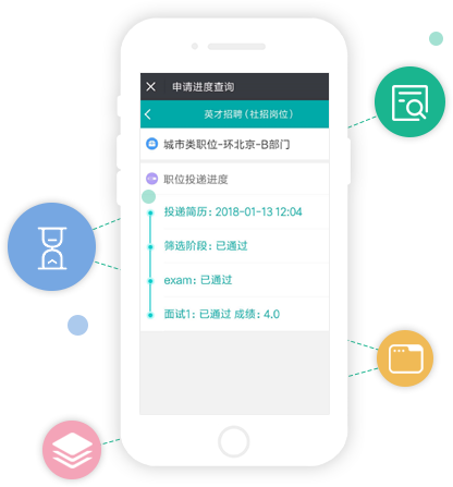 候选人可快速便捷的通过PC/M端了解当前网申进度,亦可查询测评、笔试、面试成绩。确保候选人第一时间获取求职反馈,大幅降低招聘流程长导致的人才流失率。