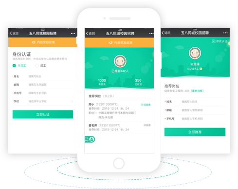 支持验证码、邮箱等多种线上公司员工认证方式,后台可查看管理内推记录,清晰明了。