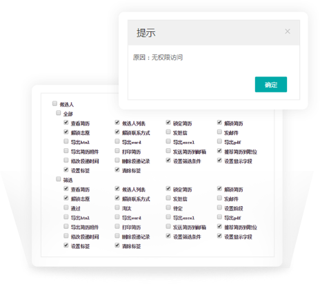 根据企业组织架构及HR分工,设定多种角色并限定权限,支持自定义角色及设定操作权限。满足企业按部门、按角色、按岗位等多维度账号管理需求,校招团队协作必用功能。
